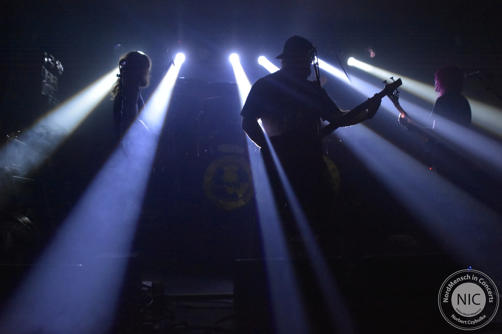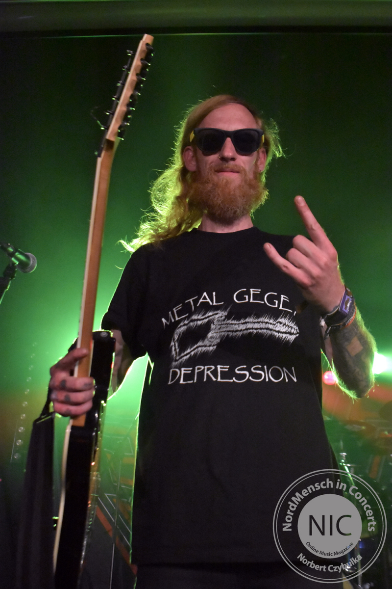 Der Zipper wird nun gegen die Regenjacke getauscht und ich mache mich über die schon überraschend vollen Campgrounds auf den Weg zur Musik. Ich höre immer wieder „6 Tage campen, 4 Tage Festival“. Sorry Leute, lest ihr überhaupt die Running Order? Sowohl auf der „Welcome to the Jungle“-Stage als auch im Landgasthof beginnen die Bühnen bereits heute um 17.00 Uhr bespielt zu werden. Der Dauerregen lässt mich an der Jungle-Stage nur kurz pausieren. Ich entschließe mich, in den LGH (Landgasthof) zu wandern und den restlichen Abend dort zu verbringen. Dort stehen heute vier Bands auf dem Programm, die zufälligerweise alle aus meiner Heimatstadt Kiel kommen.