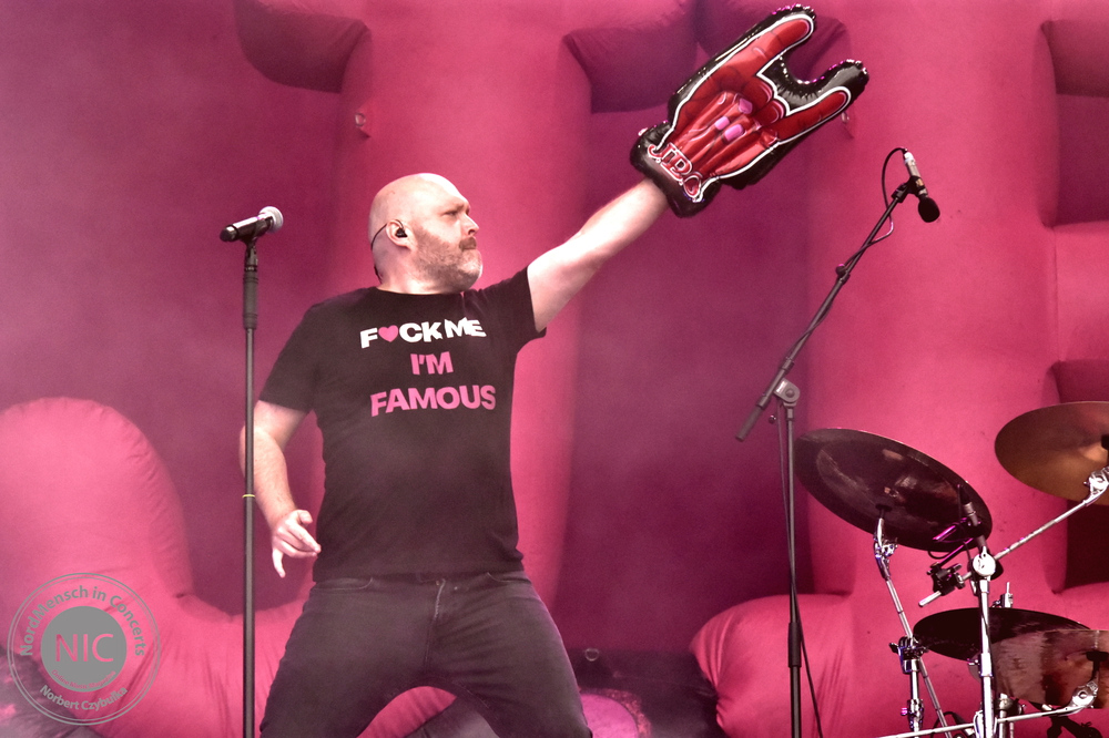 Ich mache mich auf den (beschwerlichen) Weg zur Louder-Stage und gebe mir „Deine Cousine“ aus St. Pauli zum Start in das Festival. Es ist rappelvoll. Während Hunderte im Umland Gestrandete (Ehndorf, Hungriger Wolf oder auch am Volksparkstadion in Hamburg) nun maximal den Magenta-Stream schauen dürfen, stehe ich mit meiner Kamera im Fotograben und atme durch. Nach Skindred, Broilers und Doro´s 40th Anniversary-Show auf der Harder beziehungsweise Faster-Stage, bin ich durch mit diesem Tag und wanke zu meinem Camp.