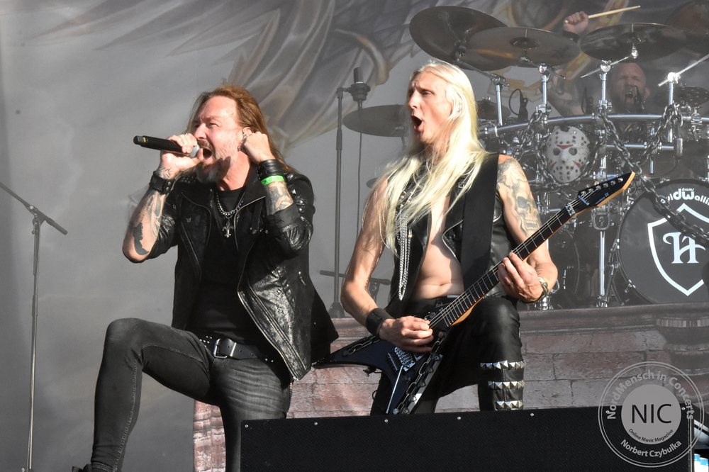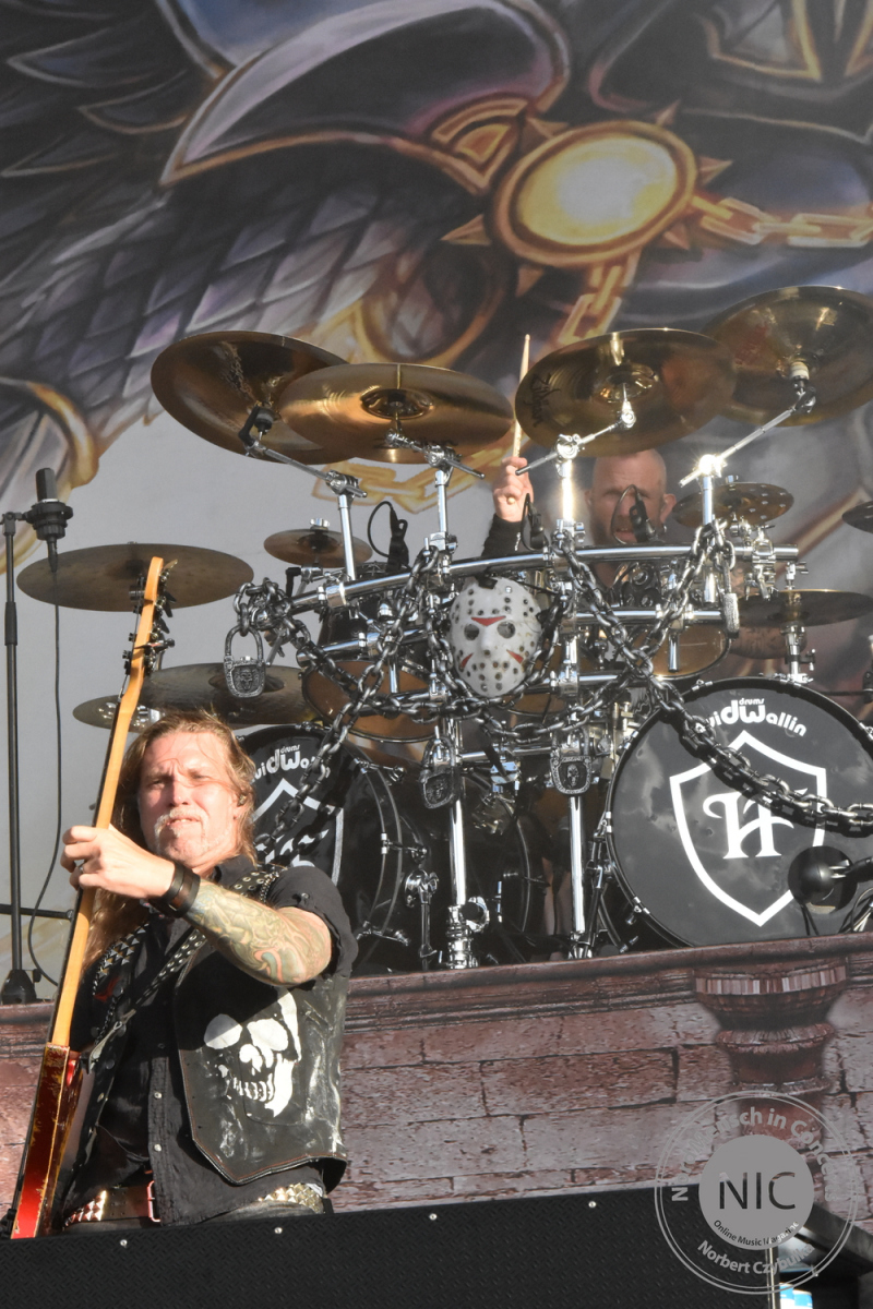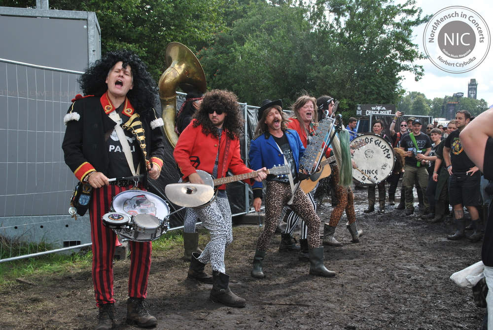 Ich möchte wieder rauf ins Pressezelt, denn Heaven Shall Burn haben sich zu einem lockeren FAQ angekündigt. Wann hat man schon einmal die Chance, den Jungs aus Jena so nahe zu kommen? Das Konzert von Delain werde ich mir Zuhause im Replay bei Magenta Music noch einmal zur Begutachtung anschauen. Hier ist so viel los, das man es einfach nicht einmal annähernd schafft, alles zu sehen. Dennoch schaffe ich es, zu Ensiferum vor der Harder-Stage im Fotograben zu stehen. Schnell Fotos und ab zur (abgesoffenen) Wackinger-Stage. Eigentlich sollten dort die „Beschissenen Sechs“ spielen. Leider hat sich deren Sänger bei Werbeauftritten in der Vorwoche erkältet und sie sagen den Wacken-Auftritt enttäuscht ab. Fans wissen natürlich, das sich hinter diesem Namen Kai Wingenfelder mit Fury in the Slaughterhouse versteckt. Die Hope-Promotour hat Spuren an Kai’s Stimme hinterlassen. Da in der kommenden Woche die dazugehörige Tour startet, möchte die Band verständlicherweise nichts riskieren. Als Ersatz für diesen Slot steht die Hamburger Band Hardbone zur Verfügung, die gestern Abend den Landgasthof abgerissen haben. Ihre 110 Prozent Rock´n´Roll begeistern mich schon seit Jahren. Ich treffe vor der Bühne Bekannte aus Frankfurt, mit denen wir 2011 und 2012 zusammen campten. Danach hetze ich sofort wieder zur Faster-Stage.